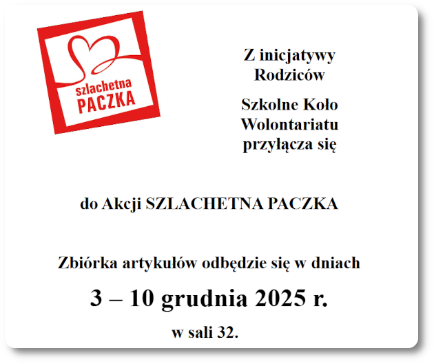 W dniu 05.12.2025 r. po raz kolejny Samorząd Uczniowski wraz z Kołem Wolontariatu zorganizował Mecz Charytatywny. Tegoroczne hasło inicjatywy brzmiało: „Paczka dla dzieciaczka”. Wydarzenie połączyło w sobie lekcję sportu, współzawodnictwa między drużynami i zawodnikami piłki siatkowej, ale również cenną lekcję empatii i wrażliwości na drugiego człowieka i jego potrzeby.